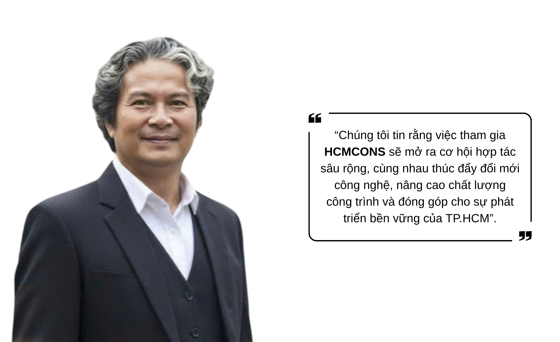 Ông Nguyễn Minh Thông chia sẻ: “Chúng tôi tin rằng việc tham gia HCMCONS sẽ mở ra cơ hội hợp tác sâu rộng, cùng nhau thúc đẩy đổi mới công nghệ, nâng cao chất lượng công trình và đóng góp cho sự phát triển bền vững của TP.HCM”.