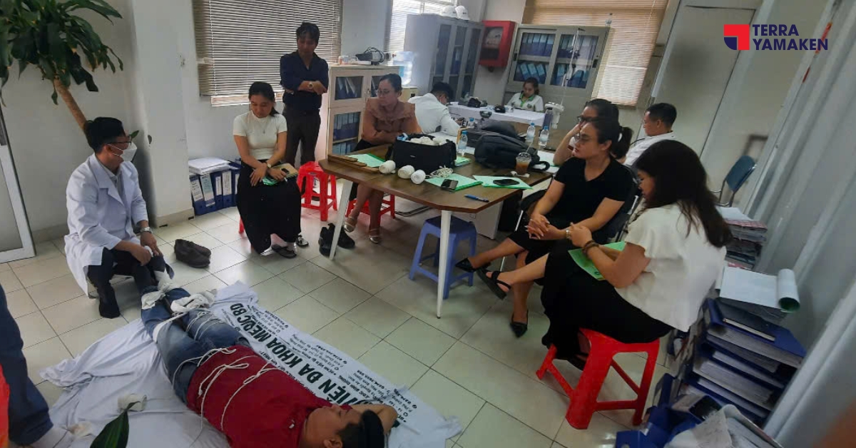 Implementing first aid plays a crucial role in preventing the victim’s condition from worsening, while also creating opportunities for recovery and saving lives. Terra Yamaken always prioritizes the safety and trust of our workforce, viewing it as the foundation for stable and sustainable business development. Nevertheless, the risk of workplace accidents persists in all work environments, and if first aid is not performed correctly, injuries can become more severe, potentially leading to fatalities.