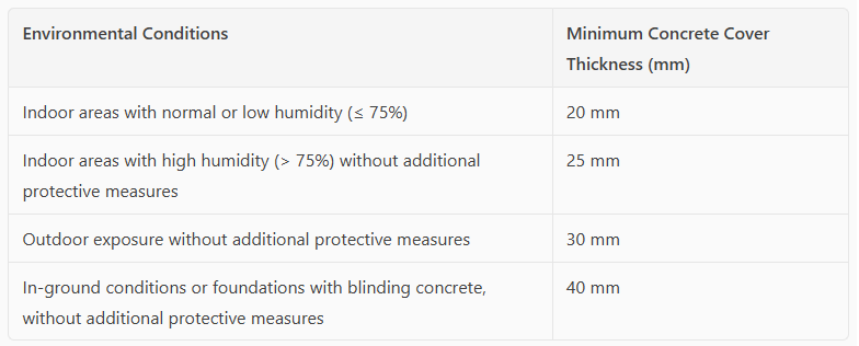 Complying with the specified concrete cover thickness not only enhances structural durability but also helps mitigate the risk of corrosion-induced cracking and other environmental deterioration.